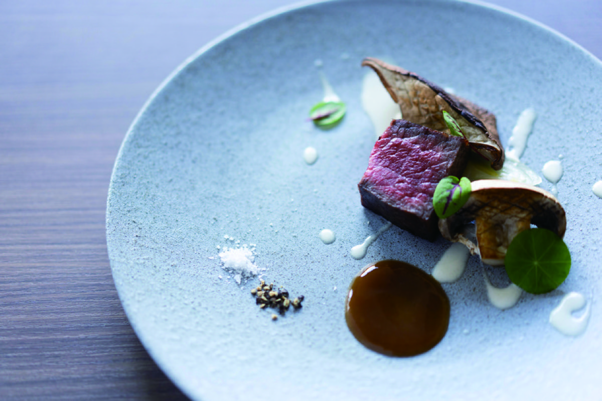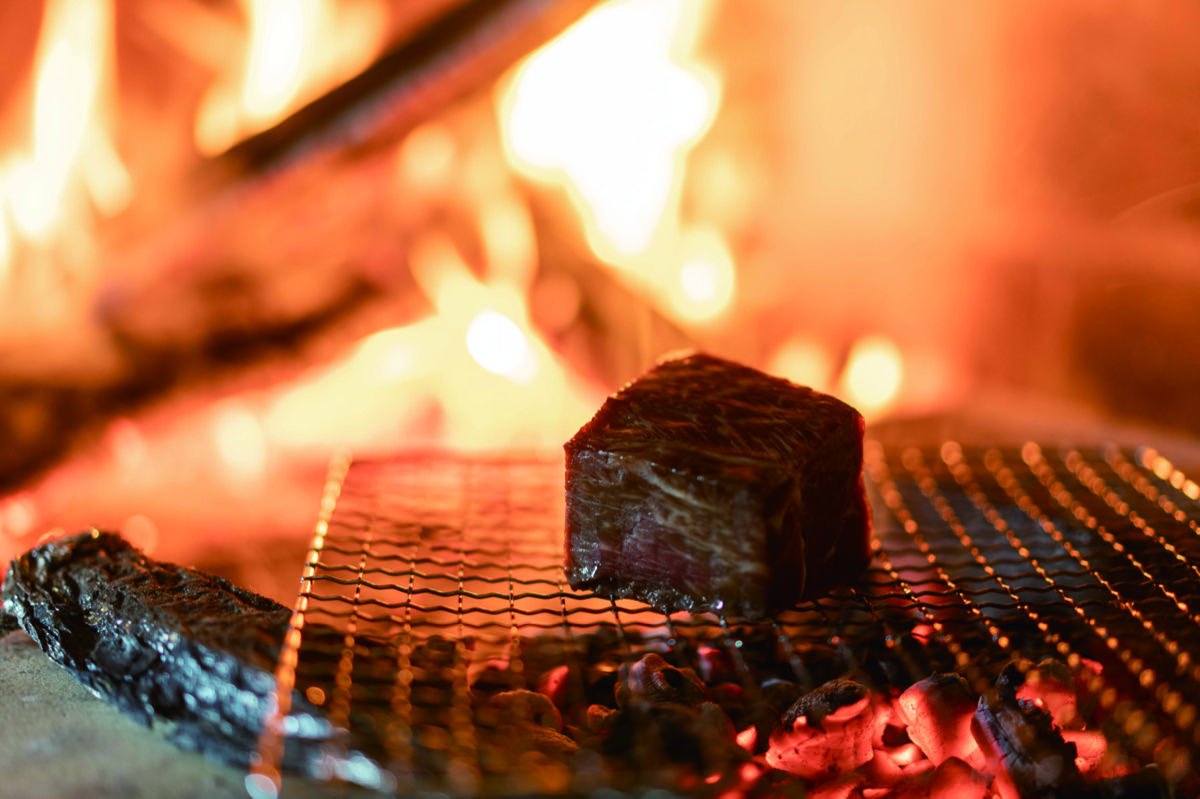ディナーのメニューはモダンフレンチをベースとした創作料理で構成される。ユニークなのはその調理方法で、薪焼きや発酵料理を取り入れた。特に薪焼きはテーブル席からその火を眺められる演出付き。薪焼きならではのスモーキーな香りとともに楽しめる。
