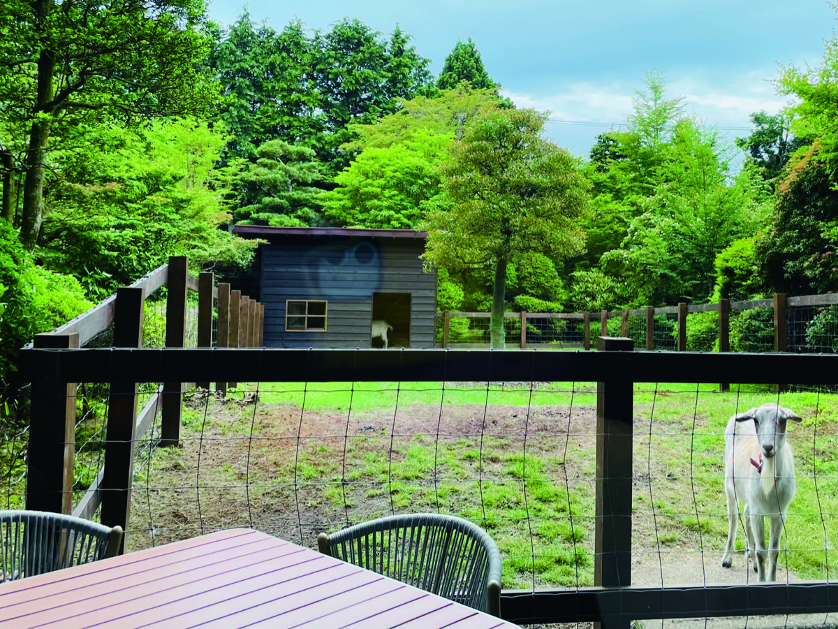 といったスイートルームや温泉に代表されるファシリティ、薪焼きのディナーが自慢の仙石原古今だが、正直ここまではそれほど驚きはない。ラグジュアリーホテルを定宿とする旅なれた諸兄なら幾度か経験していることだろう。ただ、ここには他にないものがある。それはヤギ。3匹のヤギがゲストを歓迎してくれる。