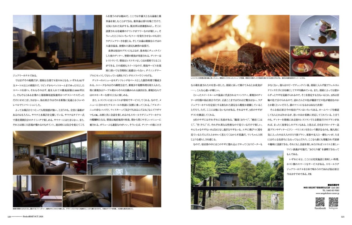 いずれにせよ、ここには充実施設と美味しい料理、ホスト側のスマートなサービスがある。スモールラグジュアリーホテルを日本で味わうのであれば仙石原古今はおすすめである。P.B.