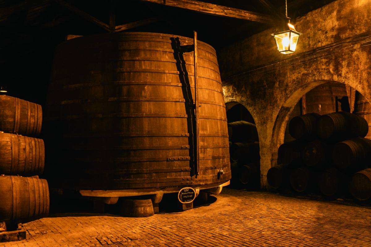 ツアーの時刻になると“ザ・ドン”のコスチュームに身を包んだスタッフが現れる。当時の写真や実際に使われていたラベルなど貴重な資料が保管されているライブラリーを説明を受けながら見学してから、ずらりと木樽が並ぶセラーを案内される。黒いマントを纏うスタッフに誘われ薄暗くひんやりとしたセラーを歩いていると、中世の時代にタイムスリップしたかのような不思議な感覚になってくる。それは、数百年もの長い間ワインを熟成させてきた木の樽が発する香りによるものかもしれない。最高品質のワイン製造と共に、世界に先駆けてブランディングを行い、広告展開に長けたSandemanのセラーは、伝統と洗練さが同居する素敵な空間だった。Sandemanの世界観を堪能してセラーを後にするとすでに日は傾き、ポルトの街は茜色に染まっていた。
