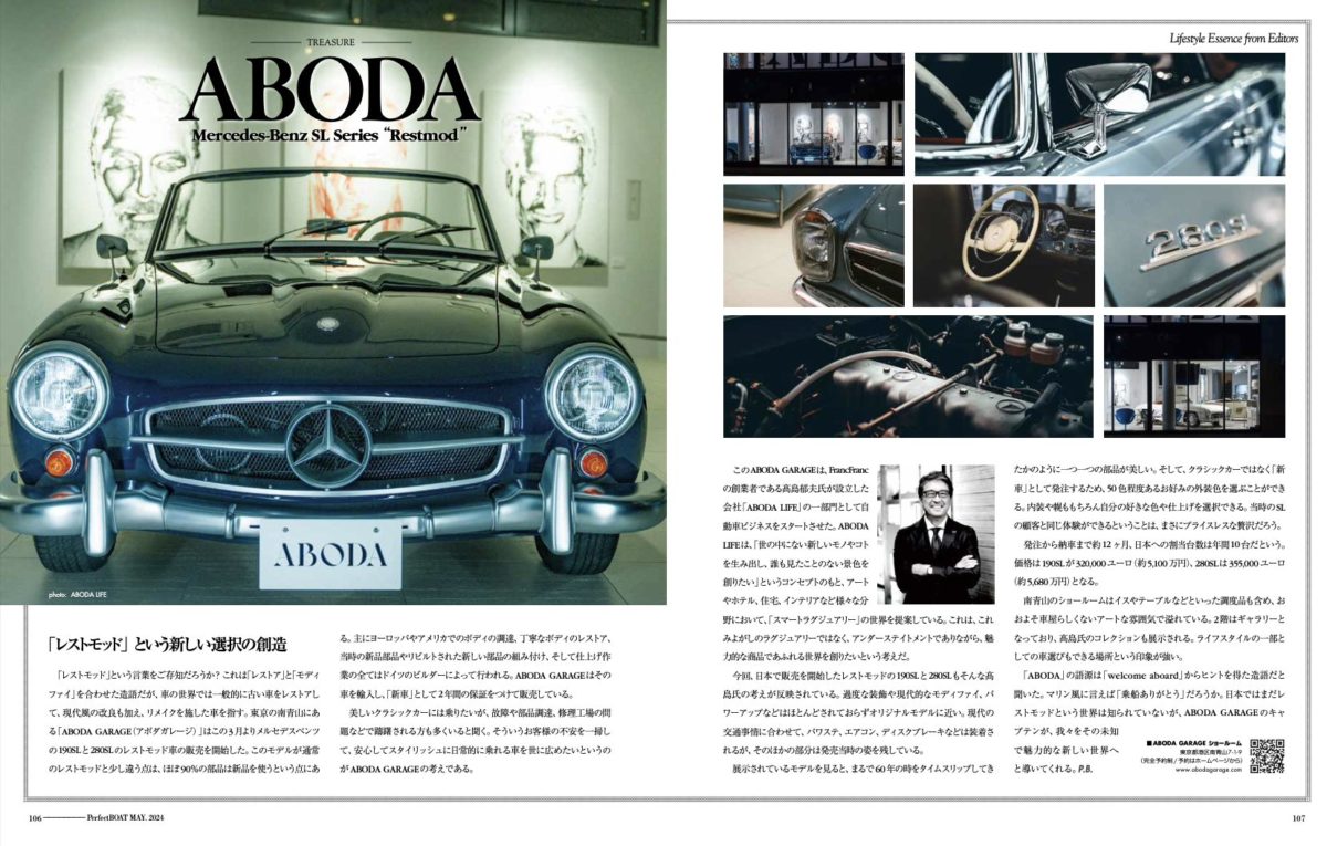 「ABODA」の語源は「welcome aboard」からヒントを得た造語だと聞いた。マリン風に言えば「乗船ありがとう」だろうか。日本ではまだレストモッドという世界は知られていないが、ABODA GARAGEのキャプテンが、我々をその未知で魅力的な新しい世界へと導いてくれる。P.B.