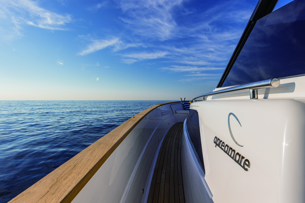 1988年、CataldoApreaはSalvatorePollioと共にAPREAMARESrlを設立。共同創設者であるSalvatorePollioは、豊富な造船経験と優れた指導力を発揮し、「Smeraldo7」を建造。大成功を収める。革新的で情熱的なCataldoApreaと、実直で控えめな性格のSalvatorePollio。二人のバランスが、APREAMAREの成功に大きく寄与したという。2001年、APREAMAREはフェレッティグループに参加し、国際市場でのマーケティングを強化。その後、2010年よりApreaとPollioのファミリーが再び独立した運営を開始する。そして現在のAPREAMAREは、ナポリ湾沿岸のトッレ・アンヌンツィアータを生産拠点とし、日本を含む世界中のディーラーにボートを供給している。