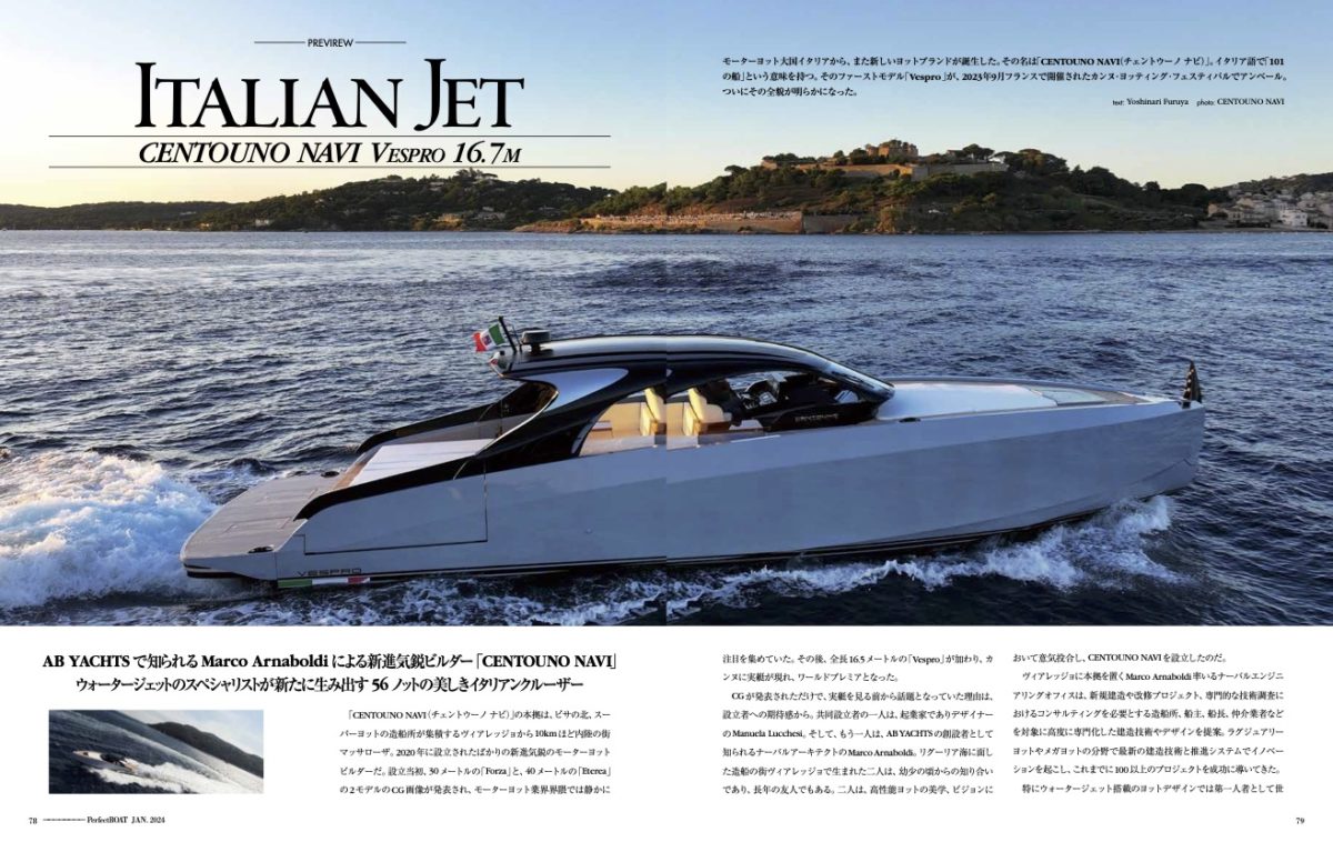 ABYACHTSで知られるMarcoArnaboldiによる新進気鋭ビルダー「CENTOUNO NAVI」ウォータージェットのスペシャリストが新たに生み出す56ノットの美しきイタリアンクルーザー