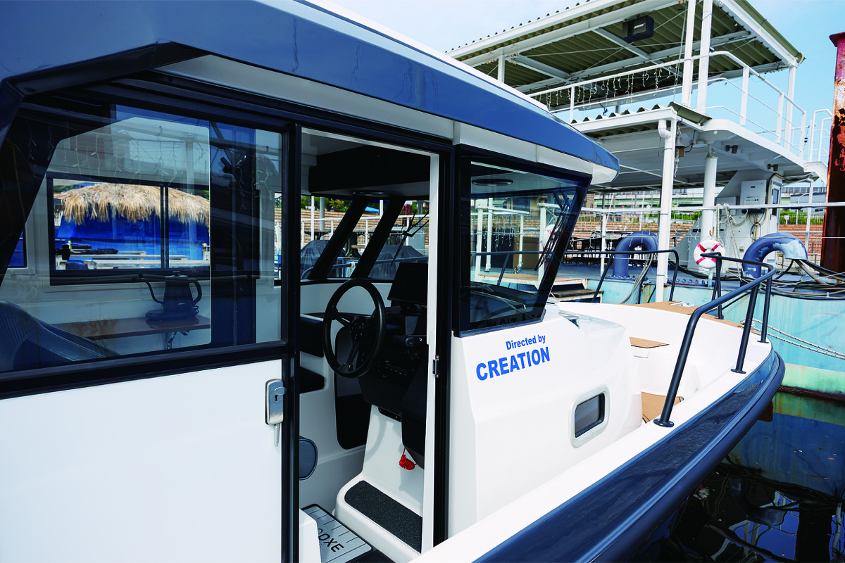 堺に本拠地を置く(株)クリエイションはさまざまなオリジナルブランドやカスタムボートのプロデュースを行っていることで知られている。特に台湾のボートビルダーと密接な関係を築いており、セールボートに始まり、小型パワーボートからスーパーヨットまで実に多彩なボートを生み出し続けている。2023年にクリエイションの新たなブランドとして立ち上げられたのがオリジナルパワーボート「C」シリーズだ。現行、「C26」「C28」「C40」(開発中)の3モデルがラインナップしている。オーソドックスなモノハルデザインのC28を除く、C26とC40については日本を代表するボートデザイナーである薄雅弘氏がデザインを担当している。実際の建造に当たっているのは、C26がUNILIGHTBOATS(ユニライトボート)、C28とC40がBINGCHENYACHT(ビンチェンヨット)だ。いずれもここ10数年で目覚ましい発展を遂げている台湾ビルダーの一角を担う。