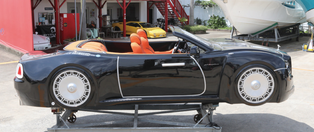 JetCarは、水上を疾走するために設計されたクルマ型のウォータークラフト。外観はロールスロイスを彷彿させるほど精巧で、FRP(繊維強化プラスチック)などの軽量素材を用いたボディは、浮力性能と耐久性を高次元で両立させている。海面を滑るように走るダイナミックな加速が最大の魅力だ。