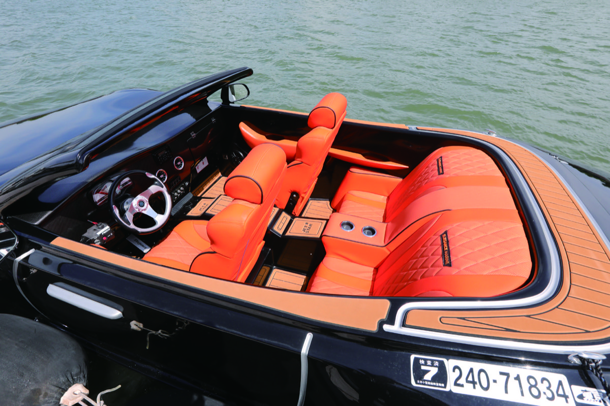 動力には水を吸い込み後方に噴射するジェット推進方式を採用。操縦性に優れ、浅瀬でも軽快に走行可能である。モデルによっては最高速度70~80km/hを記録し、まさに“水上を走るクルマ”と呼ぶにふさわしい走行性能を誇る。運転席にはハンドルとアクセルペダルを備え、ドライバーはクルマさながらの操作感覚を味わえる。