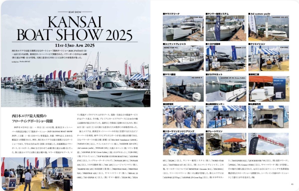 2025年4月11日(金)~13日(日)の3日間、新西宮ヨットハーバー内特設会場にて「関西ボートショー2025(KANSAI BOAT SHOW 2025)」(主催:(一社)日本マリン事業協会、共催:NPO法人日本中古艇協会)が開催された。例年、西日本エリアでは最大規模となるボートショーであり、今年は合計61社(団体)が出展した。出展艇数はパワーボート、セールボート、PWCなど合わせて45艇(陸上展示11艇・台)だった。陸上展示エリアには陸上展示艇の他、マリーナ関連が5ブース、マリン関連グッズやアイテムが13ブース、保険・行政などの関連サービスが12ブース並ぶ。その他、プレミアムカーエリア5ブースには10台の輸入高級車が展示されていた。最終日こそ降雨に見舞われたものの、特に11日(金)・12日(土)は天候にも恵まれたため数多くの来場者があった。