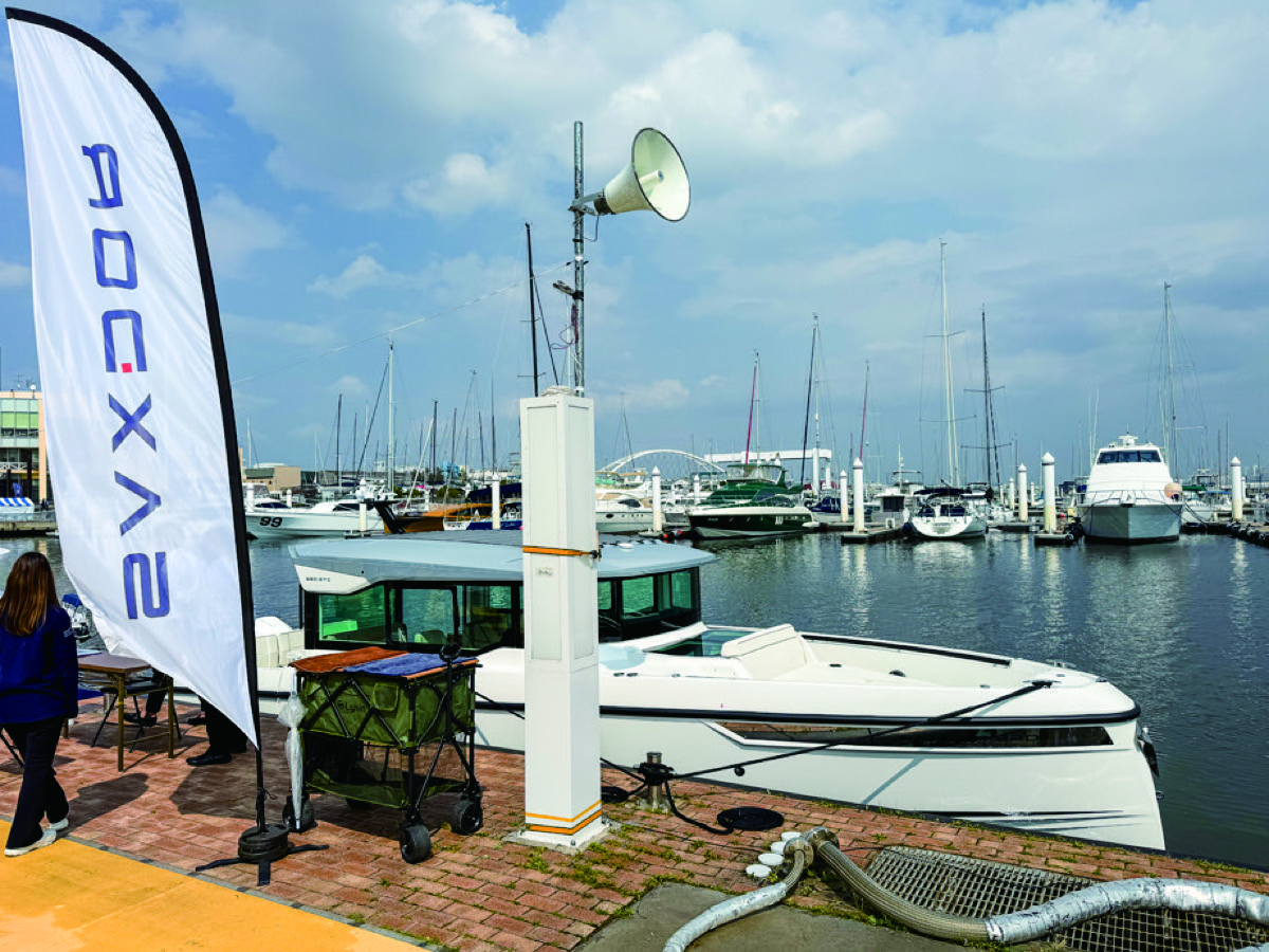 海上エリアは、新西宮ヨットハーバーの中央に位置する巨大なビジターバースを利用。両サイドにずらりとボートが並ぶ様は壮観である。主なパワーボートの展示艇(新艇)は「SEARAY Sundancer 320 OE」、「NAVAN C30」(以上、アインスAリゾート(株))、「SAXDOR 320 GTC」(Adcustom yacht)、「PONAM 31X」(大阪トヨペット(株)マリン事業部)、