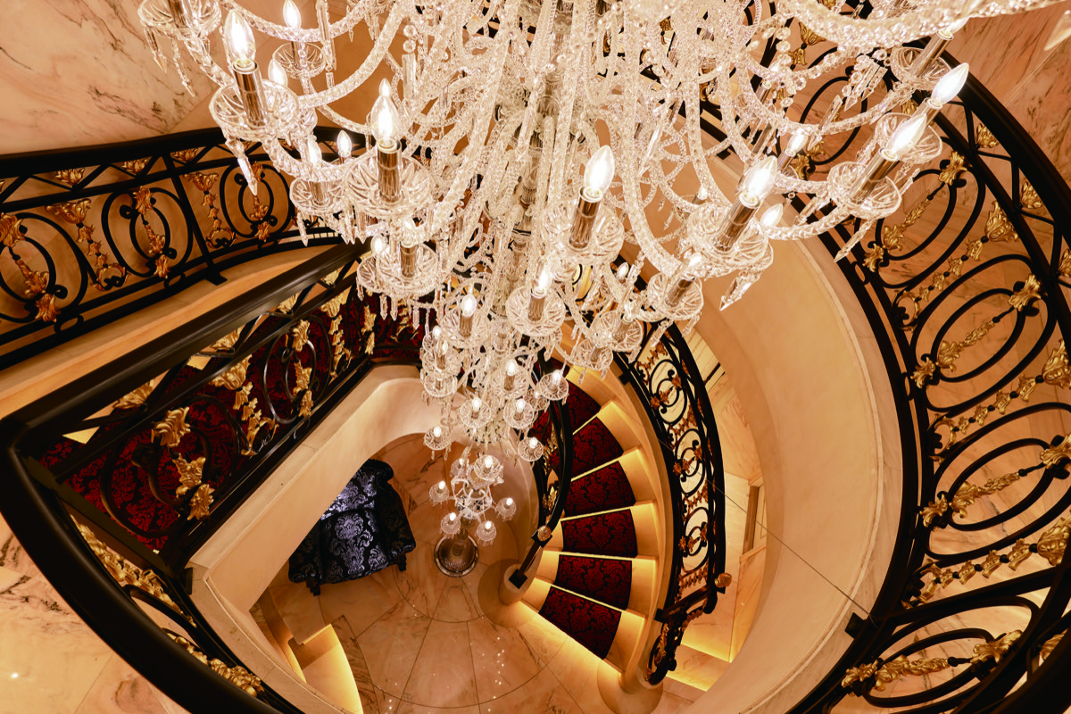 六本木交差点に近いある瀟洒なビルにあるLe Club de Tokyo。エントランスのセキュリティシステムは、アメリカ国防総省も採用するシンクロ社製の静脈認証システムだ。印象深い百合の紋章が施された扉を開けて店内へ入るとそこは非日常の別世界となる。まず目に入るのはスワロフスキークリスタルが絢爛と輝く特大シャンデリア。そして左右対称の大理石製の階段からは華やいだ雰囲気のフロア全体を見渡せる。そこで出迎えるのは美しさ、可愛さ、妖艶さ、セクシーさなど、あらゆる魅力を持つ選び抜かれた淑女たちだ。彼女たちは語学にも堪能。海外からのゲストのもてなしにも向いている。また巨大なワインセラーには厳選されたワインやシャンパンが並び、ラウンジスペースにはPoltrona Frauのソファを配置。
