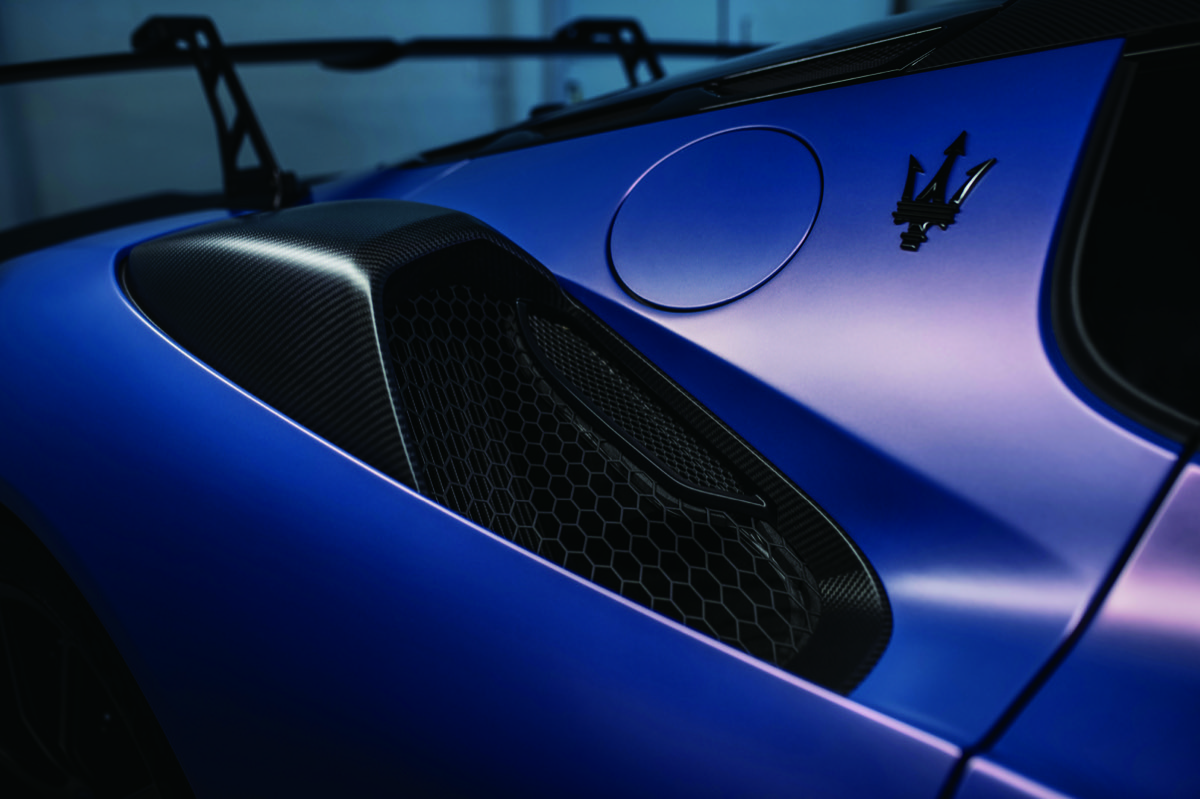 そもそもベースモデルとなったMC20が高いポテンシャルの持ち主だった。マセラティというとエレガントなスタイリングが売りで、MC20も一見そのように見えるのだが、実はスーパーカーよりもかなりレーシングカー寄りのスタイルを取る。機会があれば現車のノーズ付近に立って車体を見下ろしてみてほしい。そのあきれるまでに低くワイドな面構えに驚くはず。レーシングカー的なレイアウトをブランドイメージに似つかわしいデザインで覆っていた。派手な空力デバイスに頼ることなく、伝統的なイタリアンベルリネッタをミドシップスタイルに転用し、シンプルビューティを実現していたのだった。