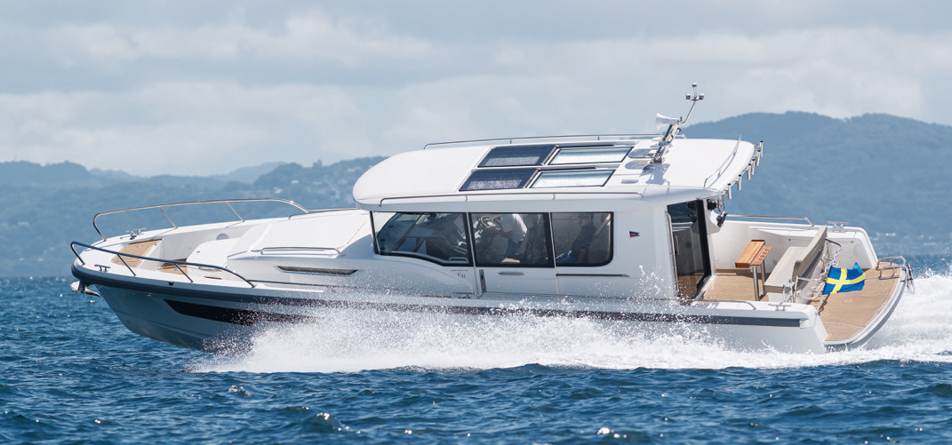 やがて、スカンジナビアのボートは世界的に注目を集める。トラッドなスカンジナビアンボートの特徴は、20フィートから30フィートほどの小型サイズのワークボートスタイル。エンジンはディーゼルで、スターンドライブが中心。寒さや飛沫からコクピットを守るキャビンやフルカバーのエンクロージャーで覆われ、ヒーターやデフロスターは必需品。短い夏に日差しを目一杯取り入れるためのワイドなガラス面やオープンウィンドウが取り入れられている。狭いキャビンながら、ファミリーがオーバーステイできるアコモデーションが備わるのも北欧スタイル。サマーハウスを所有する割合が高い北欧では、ボートは海水浴やクルージングをするだけのものではなく、離島やサマーハウスへの移動手段として使われ、高い所有率を誇ってきた。もちろん、ボート自体をサマーハウス的に使うボートライフも浸透している。