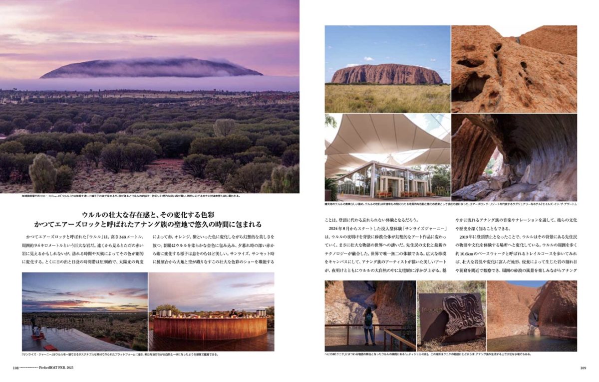 2019年に登頂禁止となったことで、ウルルはその背景にある先住民の物語や文化を体験する場所へと変化している。ウルルの周囲を歩く約10.6kmのベースウォークと呼ばれるトレイルコースを歩いてみれば、壮大な岩肌や変化に富んだ地形、侵食によって生じた岩の割れ目や洞窟を間近で観察でき、周囲の砂漠の風景を楽しみながらアナング族の思想や歴史を学ぶことができる。