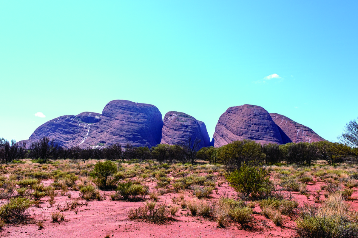 ウルルに隣接したもうひとつの神秘的な聖地が「カタ・ジュタ」だ。ウルルから西に約30kmの場所にあり、以前はマウント・オルガの名で呼ばれていたこの地は、36の巨大な岩のドームが連なる壮大な景観が圧倒的だ。