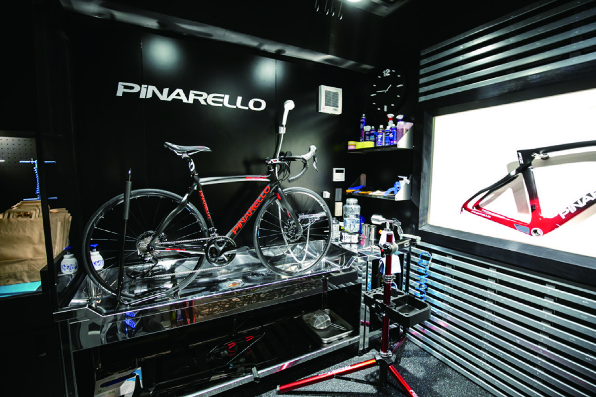 そのPINARELLOの、世界にわずか5店舗しかない専門ショップのひとつが、南青山にある「ペダリストピナレロショップ青山」だ。2020年のオープンからわずかの間に、日本一DOGMAを販売するショップという確たる地位を築いた。自転車業界では初となる完全予約制の商談システムを採用しており、フィッティングマシーンを用い、マンツーマンでベストフィットのマイバイクを作ることができる。代表の野田憲隆氏はもともとイタリア車を専門に扱ってきた方で、PINARELLOのデザインの美しさに惹かれて自転車の世界に入り、現在では青山と横浜にショップを構えている。「DOGMAは、言わばエンツォフェラーリのようなものです。PINARELLOを買った人は、次もまた必ずPINARELLOを買っていただけます。それがPINARELLOというブランドなのです」。ロードバイクのFerrari、世界最高峰と称されるPINARELLO、人生の次のチャレンジに、是非いかがだろうか。P.B.