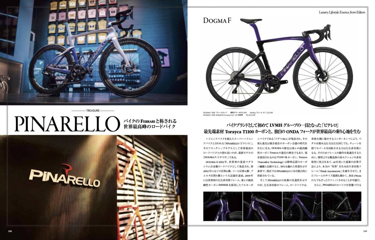「PINARELLO DOGMAF」の先進性は、PINARELLOの全モデルに通底する。素材の差、フレームの差はあれ、ミドルクラスでも他ブランドとは一線を画す乗り心地と、所有する喜びをオーナーにもたらす。2016年に自転車メーカーとして初めてLVMHグループに迎えられたことも、今後のPINARELLOの可能性を示す証であろう。