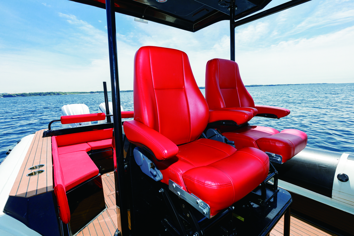 「RIB-Z38L」は、ブラックハルにホワイトのチューブ、そして鮮烈なレッドのシート類のコントラストも素晴らしい。カラーリングはカスタマイズ可能で、チューブはホワイト、ブラック、レッドなど6色、艇体はホワイト、ブラック、グレーの3色、シートは全8色からチョイスできるそうだ。日本では珍しい38フィートの大型ラグジュアリーRIB、乗れば分かる非常に楽しい走り。さらに従来のRIBの常識を覆すリーズナブルな価格帯も魅力であり、日本でのプレジャーユースRIBの普及を目指すRIBPORTならではの一艇と言えるだろう。いずれ「RIB-Z38L」の登場は、日本のプレジャーユースRIBの画期とも言える出来事と記憶されることだろう。P.B.