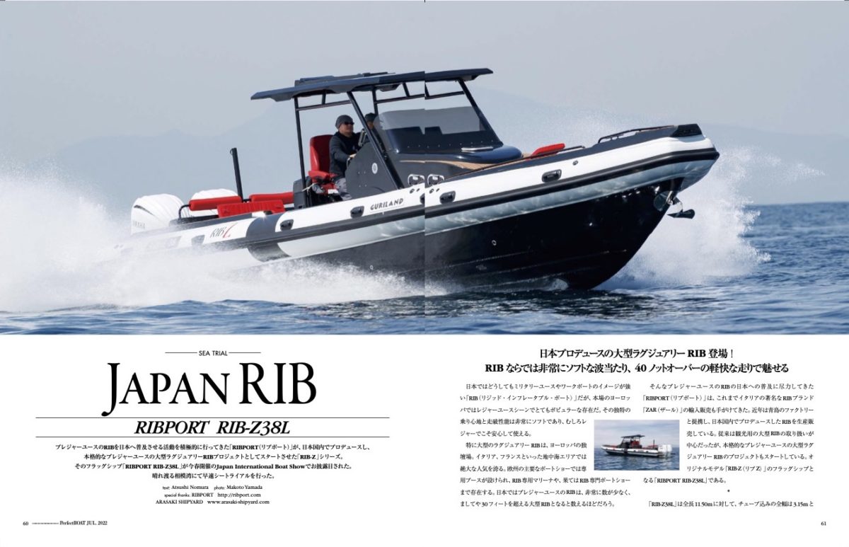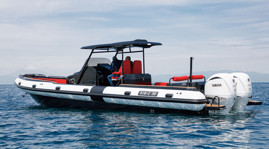 そんなプレジャーユースのRIBの日本への普及に尽力してきた「RIBPORT(リブポート)」は、これまでイタリアの著名なRIBブランド「ZAR(ザール)」の輸入販売も手がけてきた。近年は青島のファクトリーと提携し、日本国内でプロデュースしたRIBを生産販売している。従来は観光用の大型RIBの取り扱いが中心だったが、本格的なプレジャーユースの大型ラグジュアリーRIBのプロジェクトもスタートしている。オリジナルモデル「RIB-Z(リブZ)」のフラッグシップとなる「RIBPORTRIB-Z38L」である。
