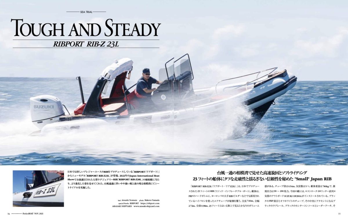 台風一過の相模湾で見せた高速旋回とソフトライディング23フィートの船体にタフな走破性と揺るぎない信頼性を秘めた”Small”JapanRIB