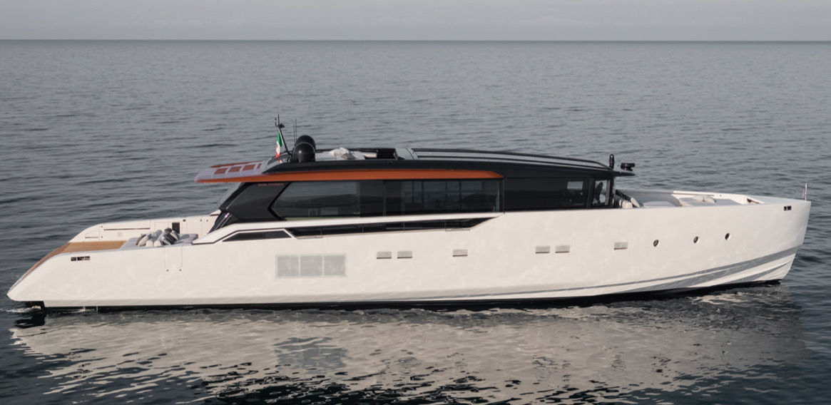 そして最新2022年のカンヌ・ヨッティングフェスティバルで最も話題を集めたのは、ニューモデルオープンクーペセグメント「SP110」のワールドプレミア。Tilli Antonelliの監督のもと、Bernardo Zucconデザイン、Marco Arnaboldiのスポーツハル、インテリアはPiero Lissoniの黄金チームになる新たなカテゴリーのメガヨット。なんとトップスピード110フィートで40ノットの快速。変革に加速がついた。