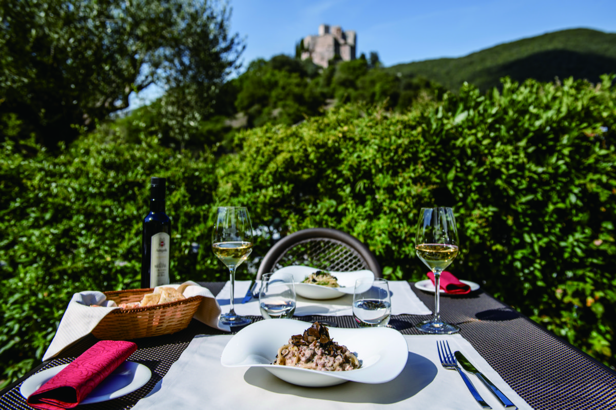 リゾートが居を構えるアントニョッラ城は、12世紀に建設されたもの。10世紀に建てられたベネディクト会修道院の敷地内に位置し、闘争と混迷が続いた中世の雰囲気を今にとどめる当地は、その後何世紀にもわたりペルージャ有数の貴族が所有していたものだ。
